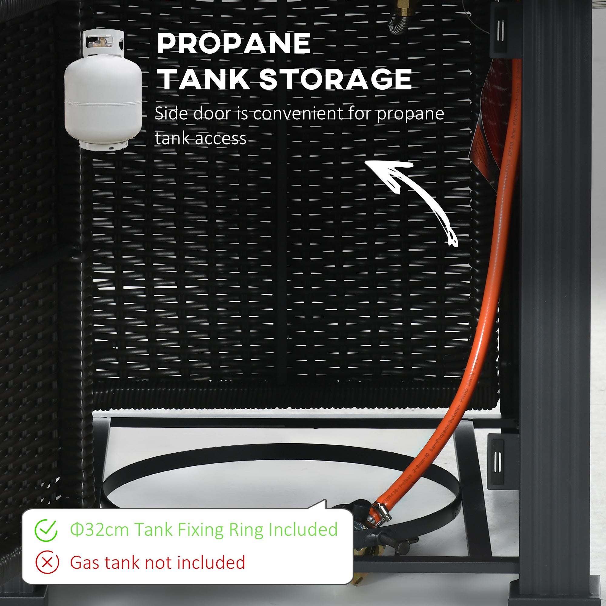 - Fuel: Propane gas (tank not included)